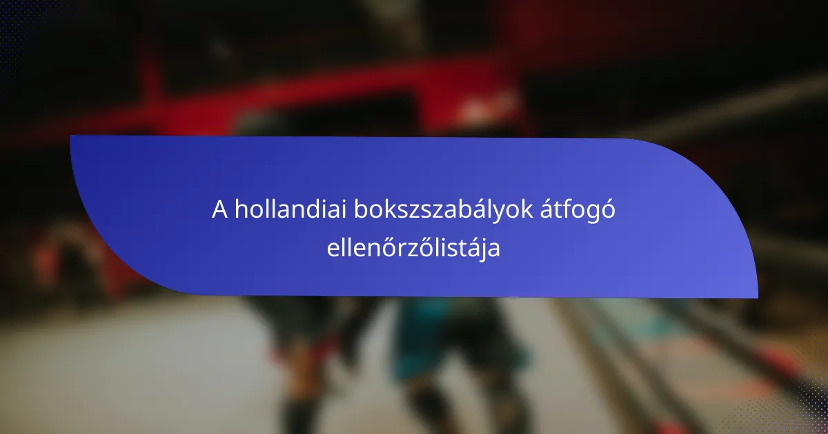 Mik a hollandiai bokszszabályok kulcsfontosságú elemei?
