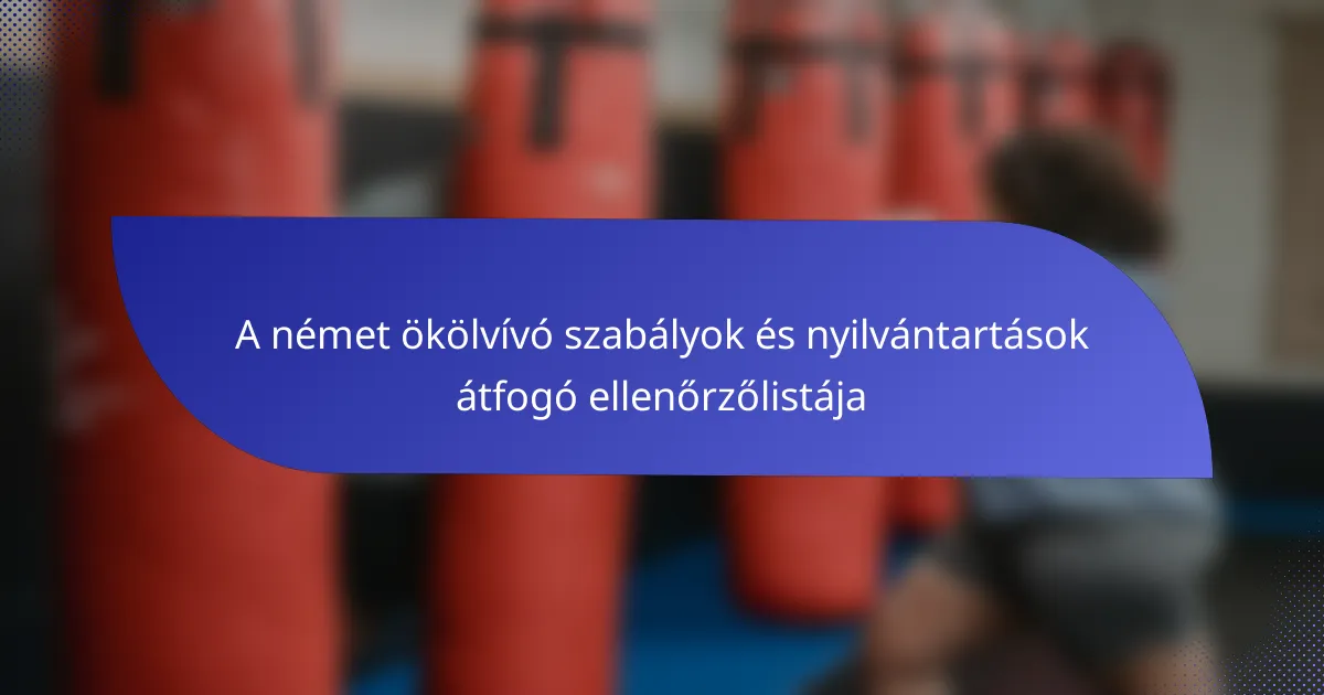 Ez a részletes ellenőrző lista a németországi bokszra vonatkozó kulcsfontosságú szabályokat és nyilvántartásokat tartalmazza, amelyeket a Német Boksz Szövetség (BDB) állapított meg. Foglalkozik az alapvető szempontokkal, mint például a licencelés, orvosi normák és biztonsági protokollok, miközben részletezi, hogyan tartják nyilván a bokszrekordokat a versenyzők teljesítményének átláthatósága és pontossága érdekében.