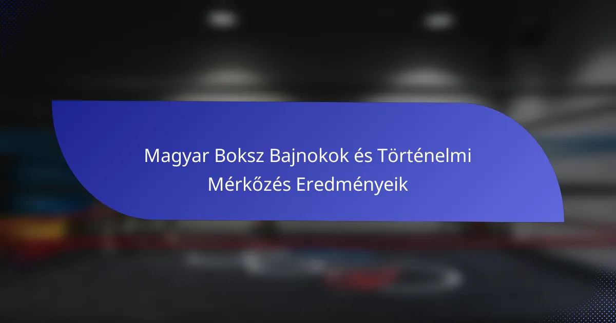 Továbbá, a nemzetközi versenyek növekedése arra ösztönözte a magyar bokszolókat, hogy külföldi lehetőségeket keressenek, ami hatással volt a mérkőzésrekordjaikra. E trendek figyelemmel kísérése értékes betekintést nyújthat a boksz fejlődésébe Magyarországon és a bajnokok karrierjét formáló tényezőkbe.
