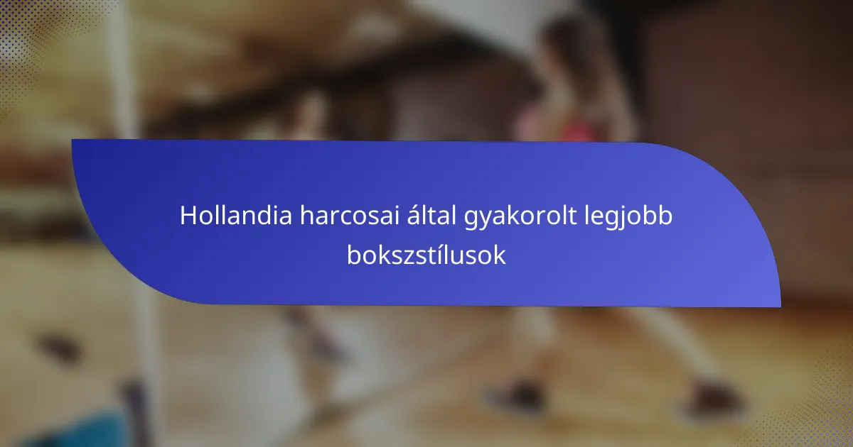 Melyek a legfontosabb bokszstílusok, amelyeket a holland harcosok gyakorolnak?